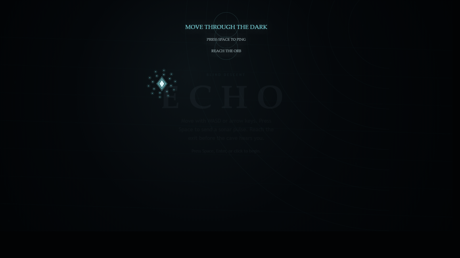 ECHO is a minimalist stealth-puzzle game where you play as a blind cave explorer lost deep underground. The screen starts completely black. Your only way to “see” is to send out a sonar pulse that briefly reveals the world around you in a rippling circle of light, then it fades back into darkness.